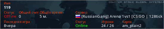 Последний раз был в сети Вчера Игрок с таким ником замечен на 23 серверах