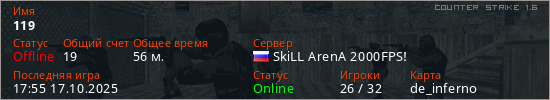 Последний раз был в сети 17:55 17.10.2025 Игрок с таким ником замечен на 21 сервере