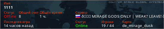 Последний раз был в сети 11 часов назад Игрок с таким ником замечен на 61 сервере