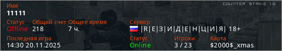 Последний раз был в сети 14:30 20.11.2025 Игрок с таким ником замечен на 50 серверах