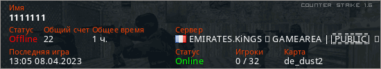 Играет на Counter Strike 1.6 сервере. Страна: ФранцияПервый раз замечен 12:56 11.06.2022