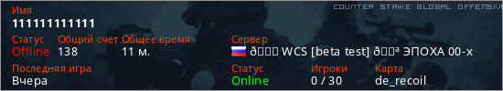 Последний раз был в сети Вчера Игрок с таким ником замечен на 20 серверах