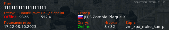 Играет на Counter Strike 1.6 сервере. Страна: РоссияПервый раз замечен 11:16 25.04.2021