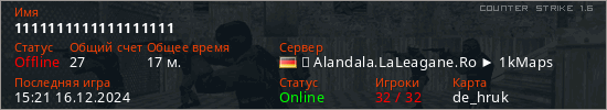 Играет на Counter Strike 1.6 сервере. Страна: ГерманияПервый раз замечен 09:28 16.12.2024