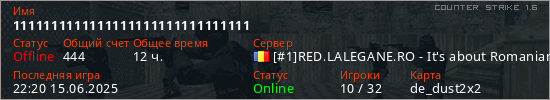 Играет на Counter Strike 1.6 сервере. Страна: РумынияПервый раз замечен 14:33 06.05.2022
