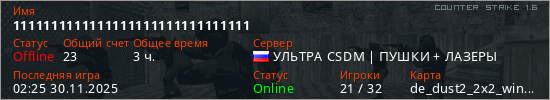 Последний раз был в сети 02:25 30.11.2025 Игрок с таким ником замечен на 31 сервере