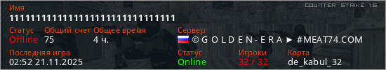 Последний раз был в сети 02:52 21.11.2025 Игрок с таким ником замечен на 31 сервере