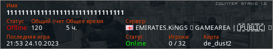 Последний раз был в сети 21:53 24.10.2023 Игрок с таким ником замечен на 31 сервере