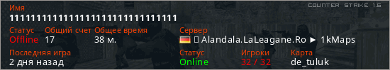 Последний раз был в сети 2 дня назад Игрок с таким ником замечен на 31 сервере