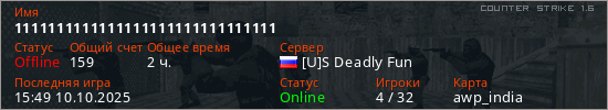 Последний раз был в сети 15:49 10.10.2025 Игрок с таким ником замечен на 31 сервере