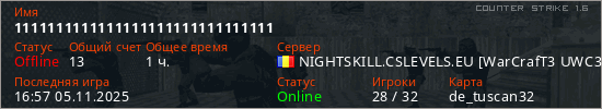 Последний раз был в сети 16:57 05.11.2025 Игрок с таким ником замечен на 31 сервере