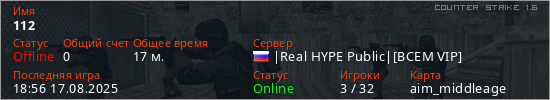 Играет на Counter Strike 1.6 сервере. Страна: РоссияПервый раз замечен 18:26 16.02.2024