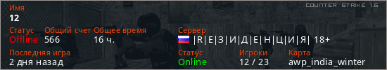 Играет на Counter Strike 1.6 сервере. Страна: РоссияПервый раз замечен 11:44 26.01.2019