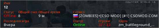 Последний раз был в сети Вчера Игрок с таким ником замечен на 63 серверах