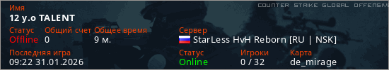 Играет на Counter Strike Global Offensive сервере. Страна: РоссияПервый раз замечен 02:35 31.01.2026