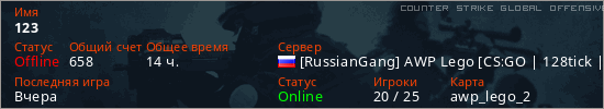 Играет на Counter Strike Global Offensive сервере. Страна: РоссияПервый раз замечен 12:30 23.08.2023