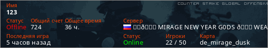Играет на Counter Strike Global Offensive сервере. Страна: РоссияПервый раз замечен 06:12 04.02.2024
