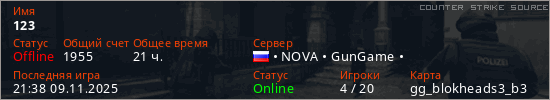 Играет на Counter Strike Source сервере. Страна: РоссияПервый раз замечен 14:39 05.09.2022