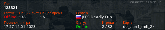 Последний раз был в сети 17:57 12.01.2023 Игрок с таким ником замечен на 29 серверах