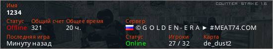 Играет на Counter Strike 1.6 сервере. Страна: РоссияПервый раз замечен 08:08 10.02.2023