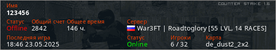 Последний раз был в сети 18:46 23.05.2025 Игрок с таким ником замечен на 40 серверах