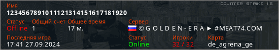Последний раз был в сети 17:41 27.09.2024 Игрок с таким ником замечен на 9 серверах