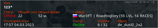 Играет на Counter Strike 1.6 сервере. Страна: РоссияПервый раз замечен 15:19 17.10.2022