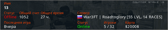 Последний раз был в сети Вчера Игрок с таким ником замечен на 58 серверах