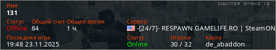 Играет на Counter Strike 1.6 сервере. Страна: СШАПервый раз замечен 17:10 11.08.2025