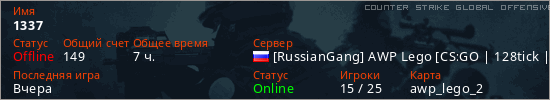Последний раз был в сети Вчера Игрок с таким ником замечен на 64 серверах