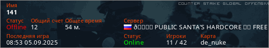 Играет на Counter Strike Global Offensive сервере. Страна: РоссияПервый раз замечен 19:12 03.05.2025