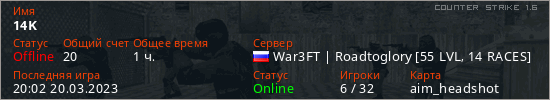Играет на Counter Strike 1.6 сервере. Страна: РоссияПервый раз замечен 14:50 11.03.2022