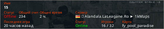 Последний раз был в сети Вчера Игрок с таким ником замечен на 34 серверах