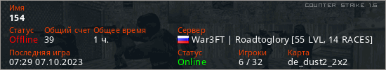 Играет на Counter Strike 1.6 сервере. Страна: РоссияПервый раз замечен 06:15 11.09.2022