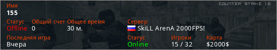 Последний раз был в сети Вчера Игрок с таким ником замечен на 9 серверах