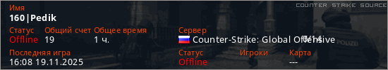 Играет на Counter Strike Source сервере. Страна: РоссияПервый раз замечен 02:12 04.11.2025