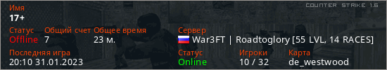 Последний раз был в сети 20:10 31.01.2023 Игрок с таким ником замечен на 9 серверах