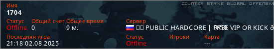 Играет на Counter Strike Global Offensive сервере. Страна: РоссияПервый раз замечен 20:56 02.08.2025