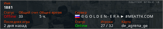 Играет на Counter Strike 1.6 сервере. Страна: РоссияПервый раз замечен 16:00 03.06.2025