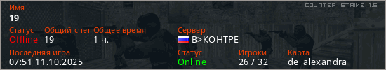 Играет на Counter Strike 1.6 сервере. Страна: РоссияПервый раз замечен 22:36 14.06.2022