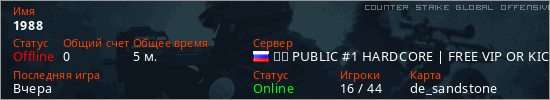 Последний раз был в сети Вчера Игрок с таким ником замечен на 24 серверах