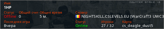 Последний раз был в сети Вчера Игрок с таким ником замечен на 16 серверах