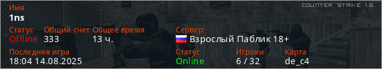 Последний раз был в сети 18:04 14.08.2025 Игрок с таким ником замечен на 3 серверах