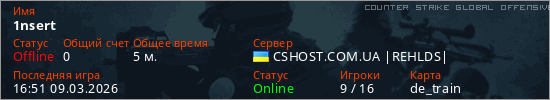Играет на Counter Strike Global Offensive сервере. Страна: УкраинаПервый раз замечен 16:40 09.03.2026