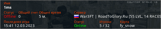 Последний раз был в сети 15:41 12.03.2023 Игрок с таким ником замечен на 5 серверах