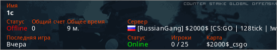 Играет на Counter Strike Global Offensive сервере. Страна: РоссияПервый раз замечен 22:41 07.12.2025