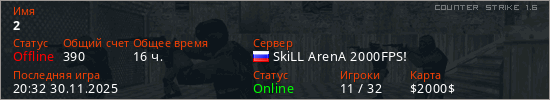 Играет на Counter Strike 1.6 сервере. Страна: РоссияПервый раз замечен 12:36 22.07.2022