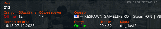 Играет на Counter Strike 1.6 сервере. Страна: СШАПервый раз замечен 21:10 24.11.2025