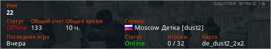 Последний раз был в сети Вчера Игрок с таким ником замечен на 57 серверах