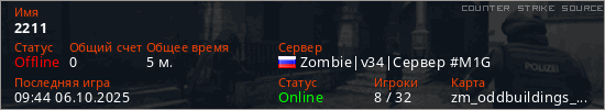 Играет на Counter Strike Source сервере. Страна: РоссияПервый раз замечен 09:42 06.10.2025